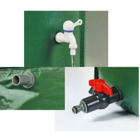 La distribution de l’eau se fait ensuite soit par un robinet, soit en connectant un tuyau d’arrosage à la base du récupérateur.