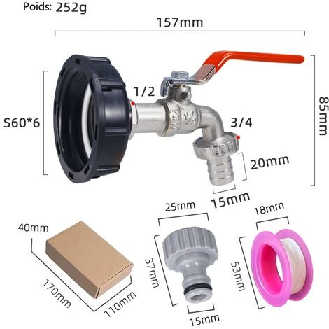 1 x adaptateur IBC pour réservoir d’eau